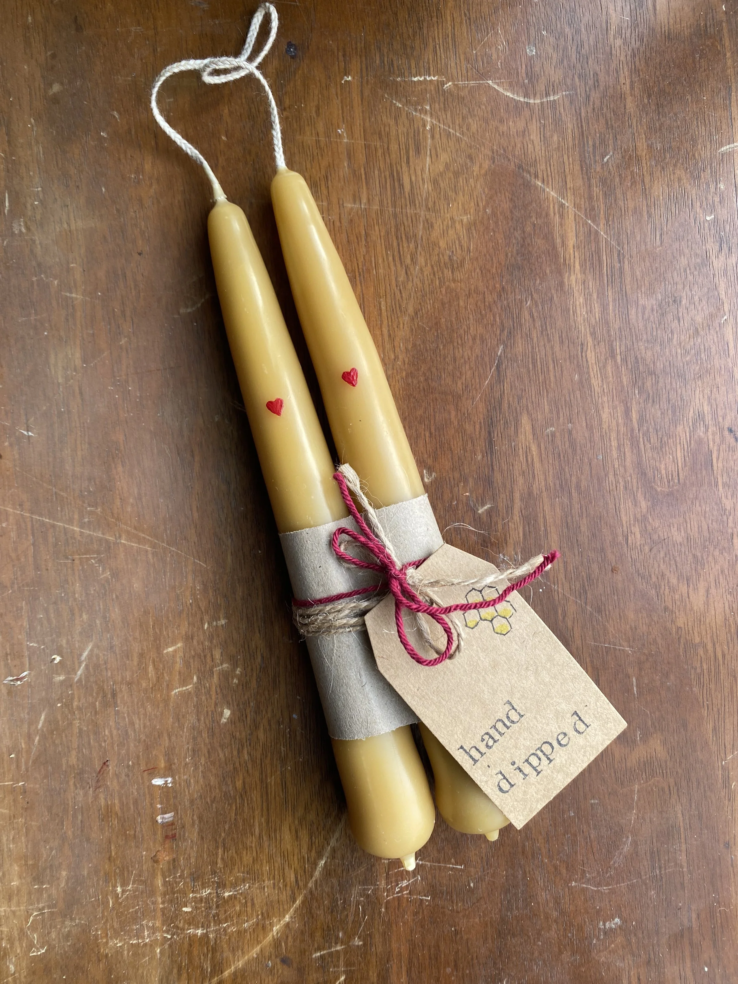 Special heart beeswax taper candles